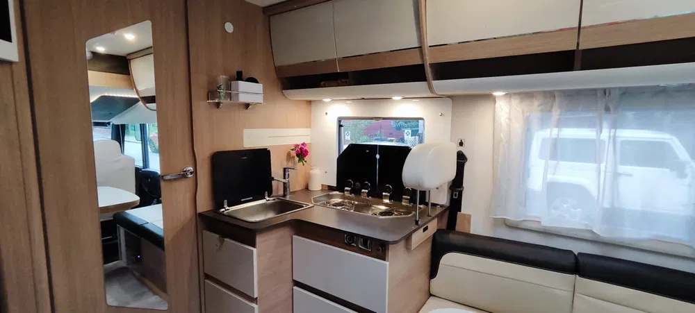Kamper Itineo MC740 Ducato Przestronny i wygodny 4 osobowy kamper w opcji “PEŁNA INTEGRA” z silnikiem o pojemności 2300cm3 i mocy 140KM Rok produkcji 2022 Wyposażenie: Łóżko małżeńskie na tyle kampera Łóżko opuszczane z nad szoferki Kanapy skórzane oraz rozkładany stolik Lodówka z zamrażalnikiem Kuchenka gazowa na 2 palniki Zlewozmywak Kabina z prysznicem Umywalka Toaleta kasetowa Ogrzewanie postojowe Oświetlenie LED Bagażnik na 3 rowery Telewizor "32" Panele fotowoltaiczne Markiza zewnętrzna kasetowa Sześć kamer cofania Moskitiery i rolety w oknach. Dane techniczne: Wymiary: szerokość 235cm. długość 740cm, wysokość 290cm Rok produkcji: 2022